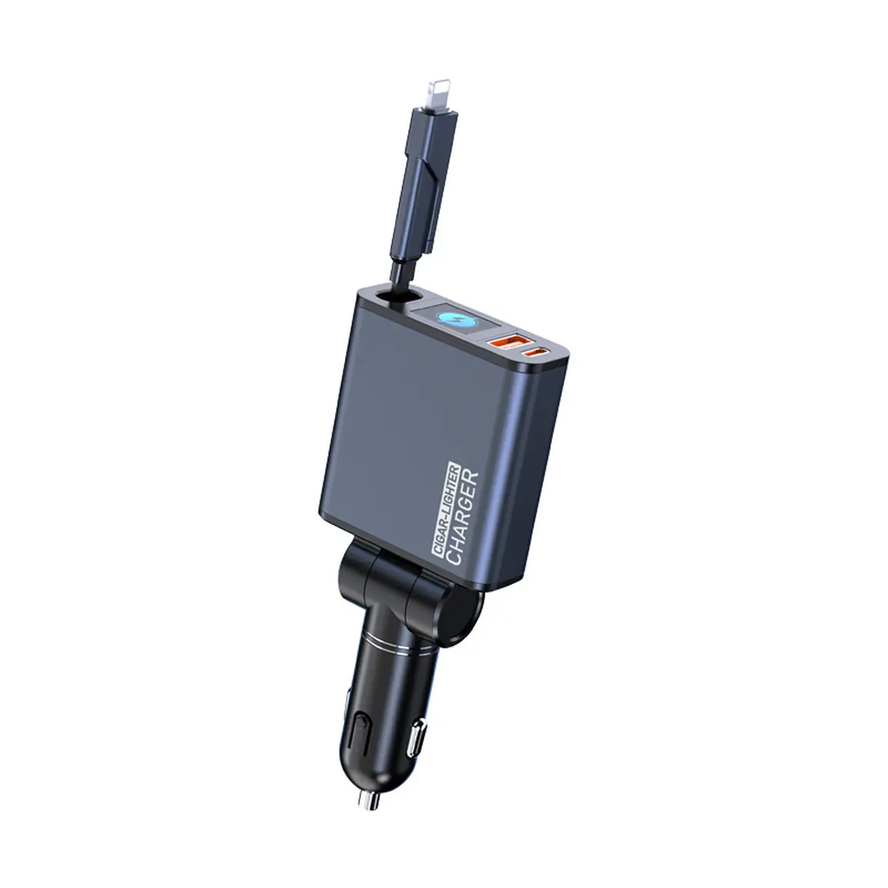 ATSHARK K006S 160W Auto-Ladegerät Schnellladen, Ultra Mini Ausziehbares USB-C Auto Ladegerät mit 2.95 ft Kabel, PD3.0/QC5.0 Zigarettenanzünder-Adapter mit Dual USB-C + USB-B Anschlüssen für iPhone, Samsung, MacBook, MateBook, Laptop