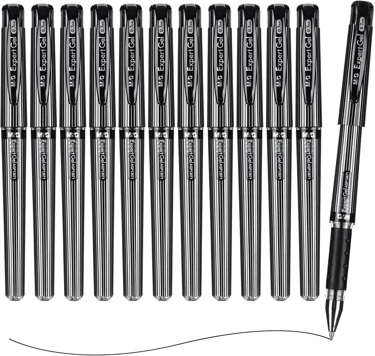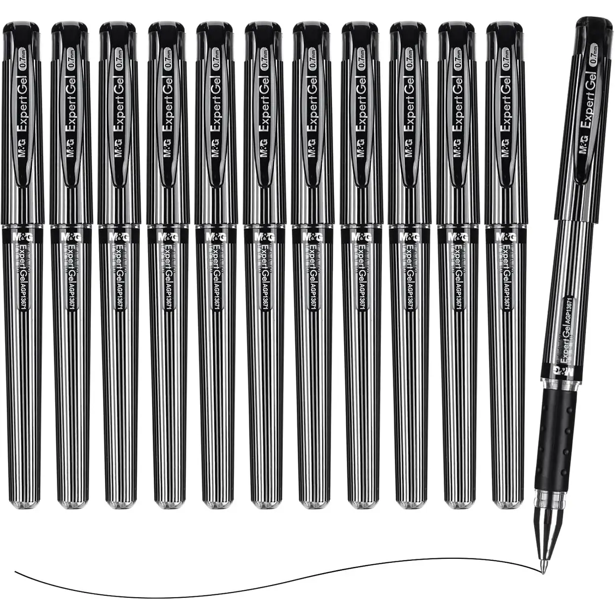M&G Gelstifte, 12er-Pack, Gelstift mit schwarzer Tinte, Gelstift für seidig glattes Schreiben, Gelstift für Schule, Prüfung und Büro, schnelltrocknender Rollerballstift