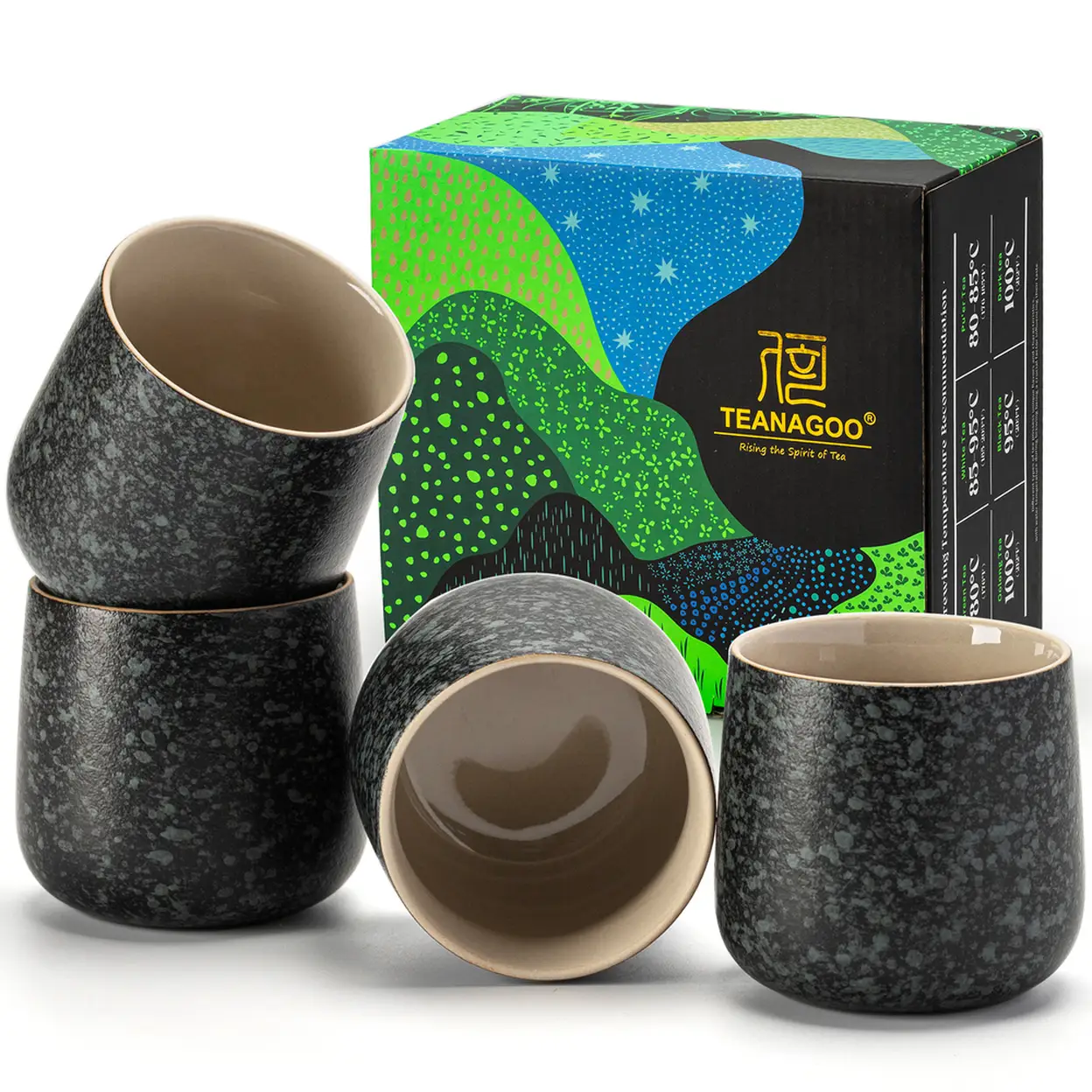 TEANAGOO Keramische Japanische Teetasse, 7.2 Unzen / 205 ml, Kohlegrau, H17, 4 Stück/Box, Asiatisches Teetassen-Set, Neujahrsangebot, Top-Geschenkempfehlungen