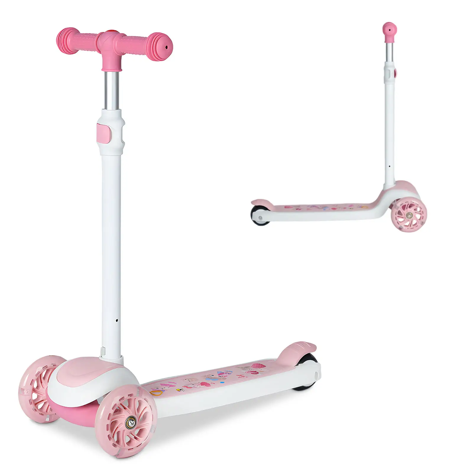 INPROB Balancierer mit leuchtenden Rädern, extra breites Trittbrett, 3-Rad-Design, Fußbremse, 30-kg-Belastbarkeit, für Kinder & Kleinkinder, Mädchen oder Jungen, ab 3 Jahren, Pink