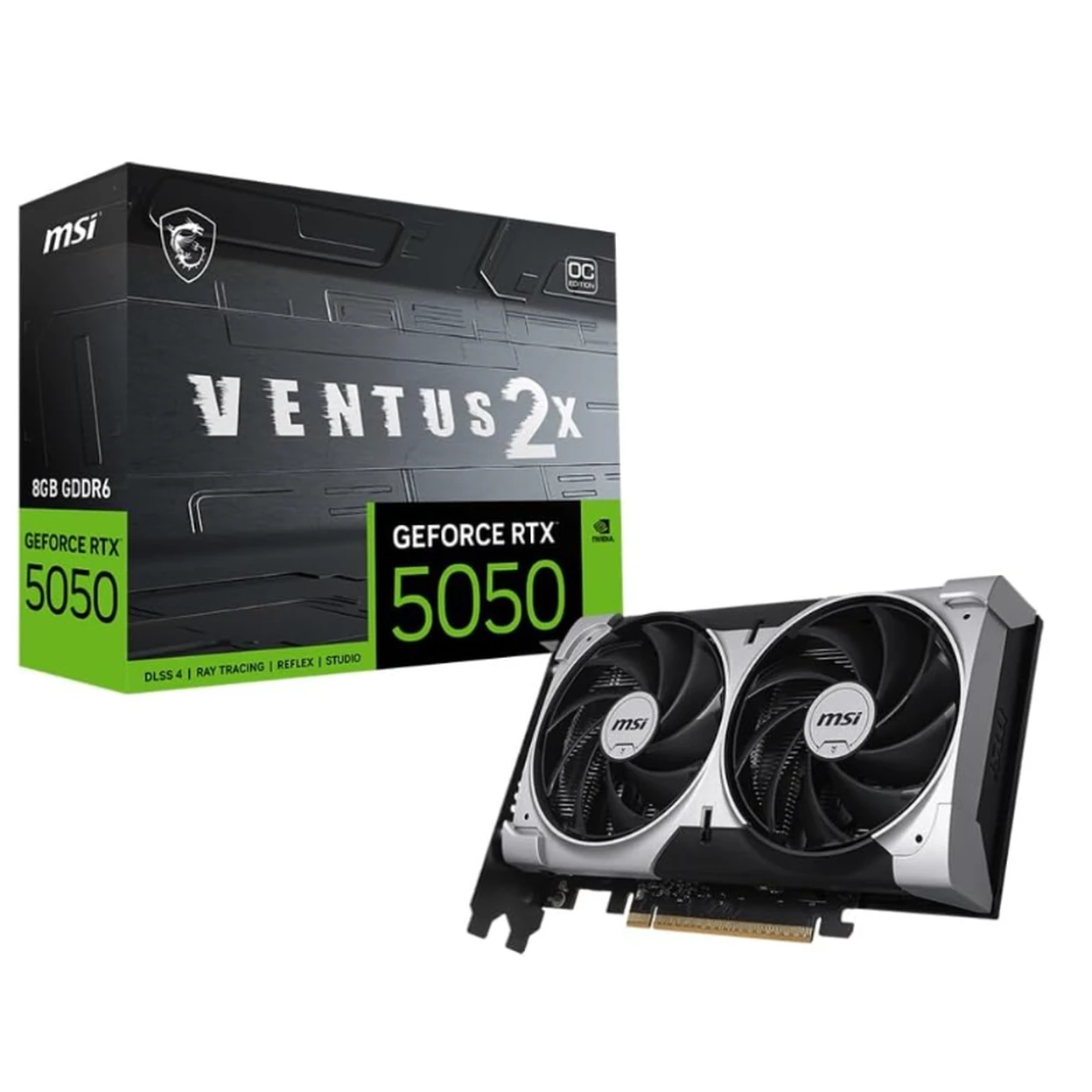 MSI GeForce RTX 5050 8G Ventus 2X OC Grafikkarte - NVIDIA Blackwell 2602 MHz Boost 8GB GDDR6 DLSS 4 PCIe 5 HDMI 2.1b DisplayPort 2.1b