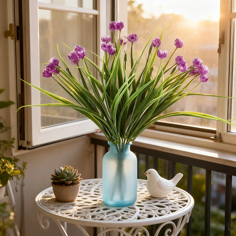 4P CS 13.39in/34cm Artificial Spring Grass, Camellia, Starry Sky, Simulated Home Decor, Simulated Flower Decoration(Red lotus color)
