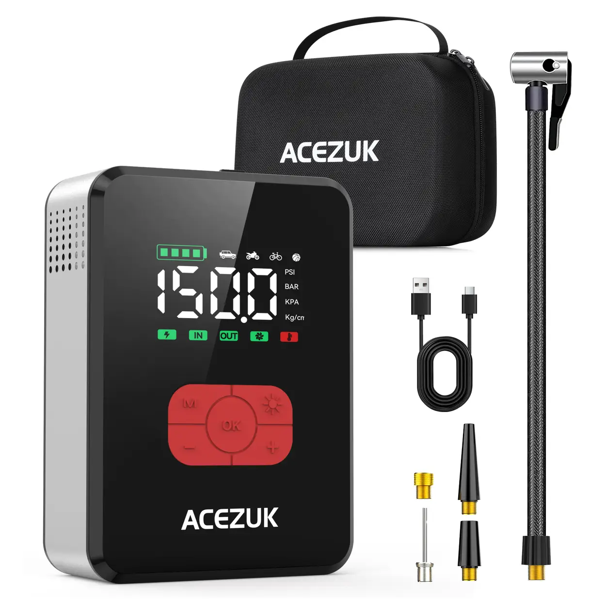 ACEZUK 7000A Starthilfe Powerbank mit 150 PSI Luftkompressor für alle Benziner & 12L Diesel, 12V Batteriebooster mit Kabeln & LED-Licht
