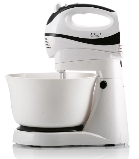 Adler AD4206 Handmixer 22x36x28 cm 1 Einheit Weiß 5 Geschwindigkeiten mit TURBO-Taste inklusive Edelstahl-Zubehör und Kunststoffschüssel