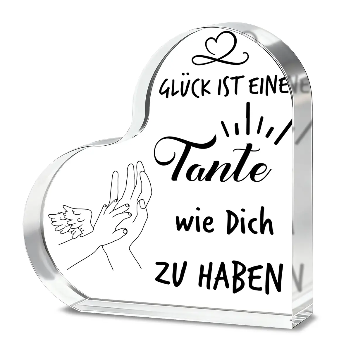 Alphynix Geschenktafel „Heart Crystal“, „GLÜCK ist eine Tante wie Dich zu haben“, Geschenk für deutsche Tante, mit Engelsflügel-Hand und kleinem Herz-Motiv, Emotionales Geschenk für die besondere Tante, 1 Stück