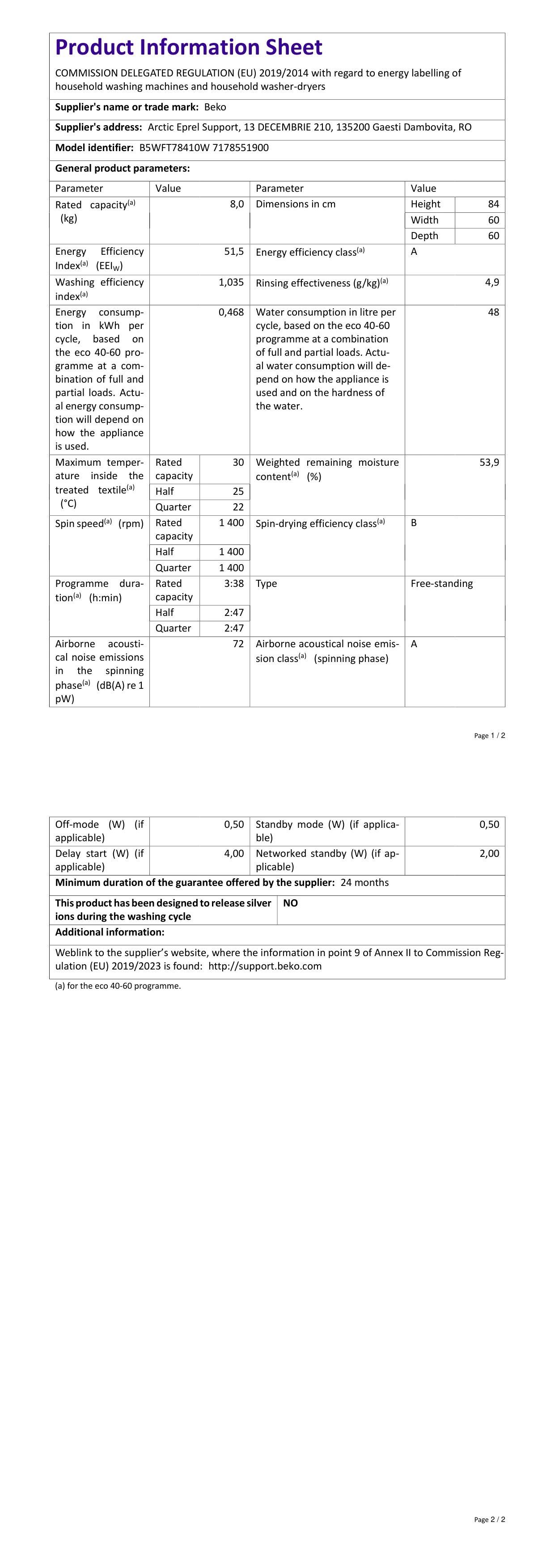 Beko 8 kg waschmaschine, Stiftung Warentest gut (1,9)*, 1400 U/min, SteamCure dampffunktion, AquaWave schontrommel, StainExpert programm, B5WFT78410W, weiß [energieklasse A]