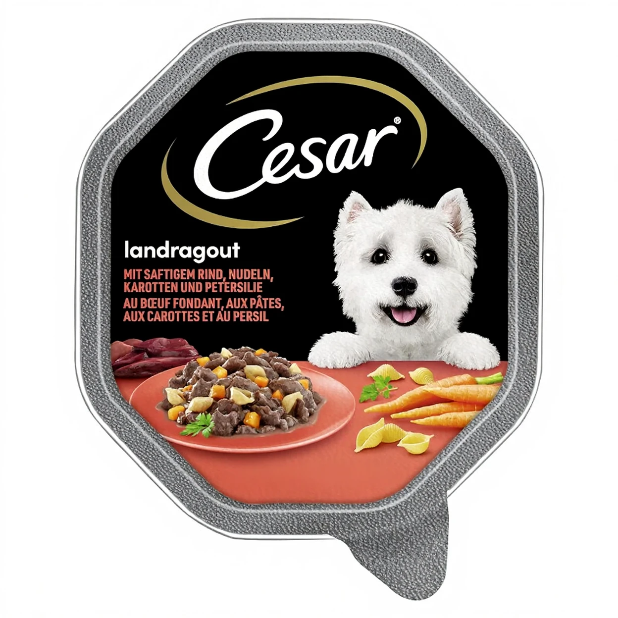 Cesar Schale Land-Eintopf mit saftigem Rindfleisch, Nudeln, Karotten und Petersilie 150g
