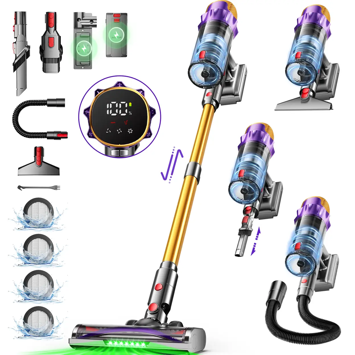 Daynee 65kPa/70Min Akku Staubsauger,65KPa Akkusauger mit Display,1M Schlauch und Anti-Tangle-Bürste,Staubsauger Kabellos,HEPA*4 Kabelloser Staubsauger für Tierhaare, Teppich und Hartböden