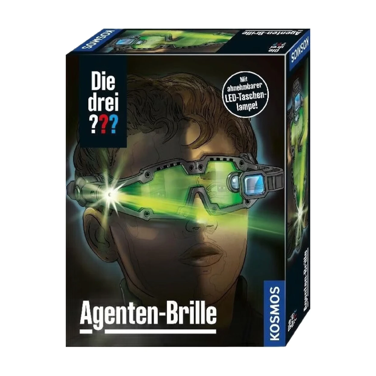 Die drei ??? Agenten-Brille von KOSMOS, mit integrierter Doppel-LED zur Beleuchtung im Dunkeln, Visier vorklappbar mit Such-Linse und Vergrößerungs-Linse, Detektiv-Spielzeug, Rollenspiel
