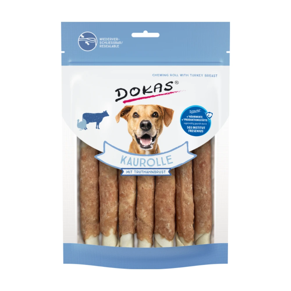 Dokas – Kaurolle mit Truthahnbrust 190 g – Rinderhautstangen in Truthahn gewickelt – Hochproteinhaltig (75 %) – Unterstützt Zahnpflege & Kaumuskulatur