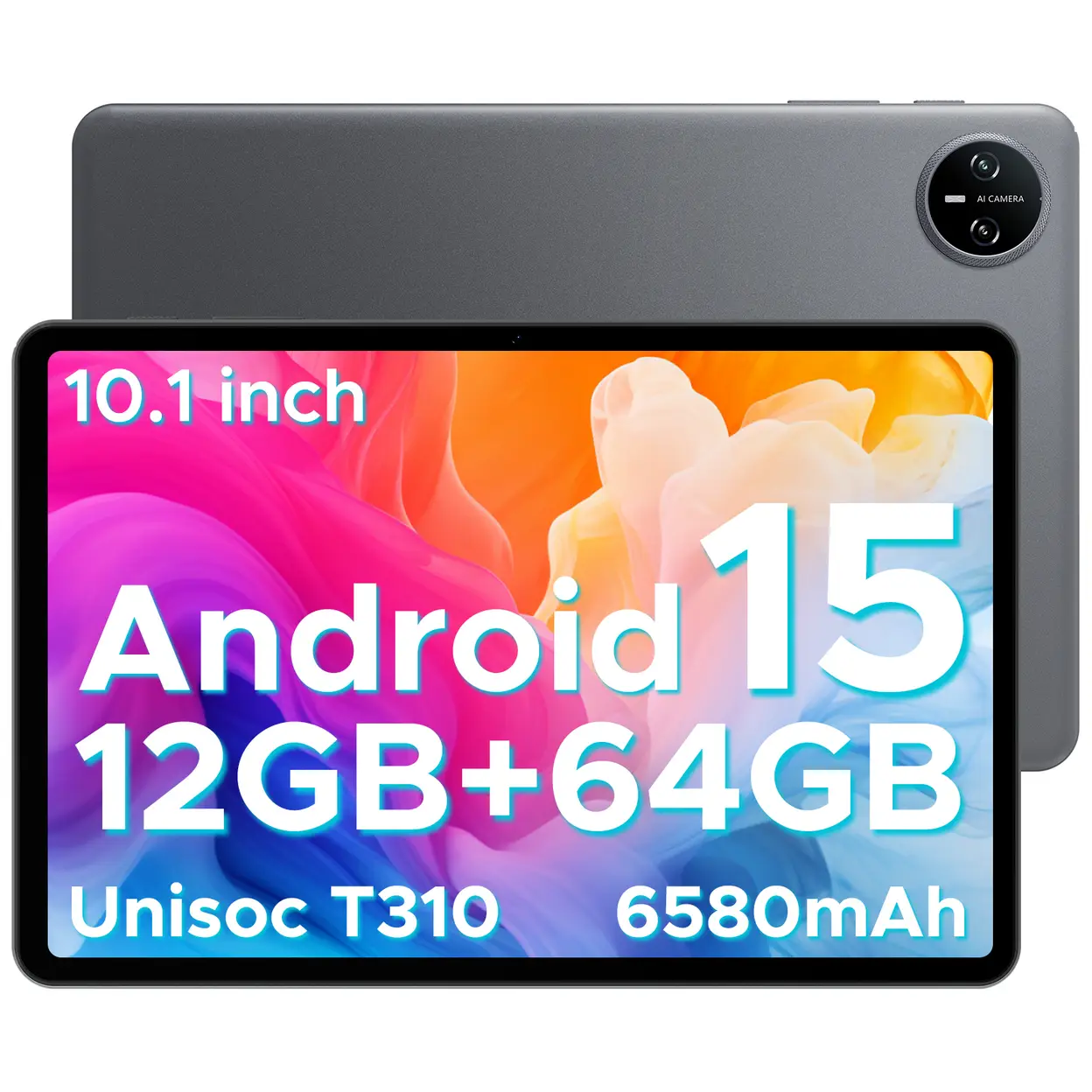 DOOGEE Tab A9 Android 15 Tablet, 10‑Zoll (Jahrgang 2026), 12 GB RAM, 64 GB ROM (TF‑Karte 2 TB), 6580 mAh Akku, 5G WiFi, Dual‑Lautsprecher, KI‑Kamera, USB‑C, GMS‑Zertifizierung, BT, Gesichts‑ID, 3,5 mm Klinkenstecker, Grau