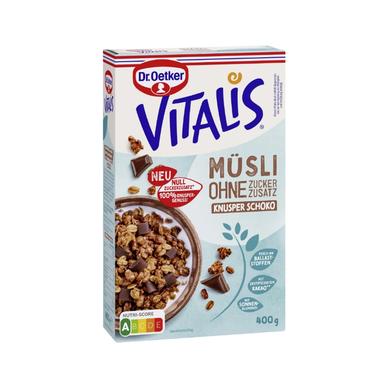 Dr. Oetker Vitalis ohne Zuckerzusatz Knusper Schoko 400 g