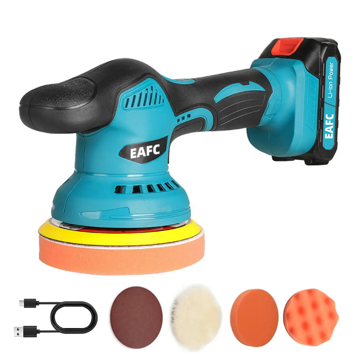 EAFC 21V elektrische Pflege- und Wachsmaschine für Autos, kabellose Wachsinstrumente, 8 Gänge, 2800–5500 U/min, wiederaufladbare 7500 mAh Akkus (1500 mAh × 5), 125 mm Scheibe
