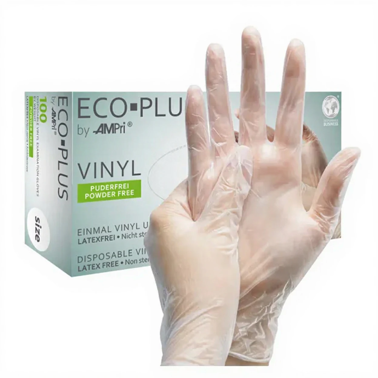 ECO·PLUS Puderfreie Vinyl-Einweghandschuhe, Medium, 100 Stück