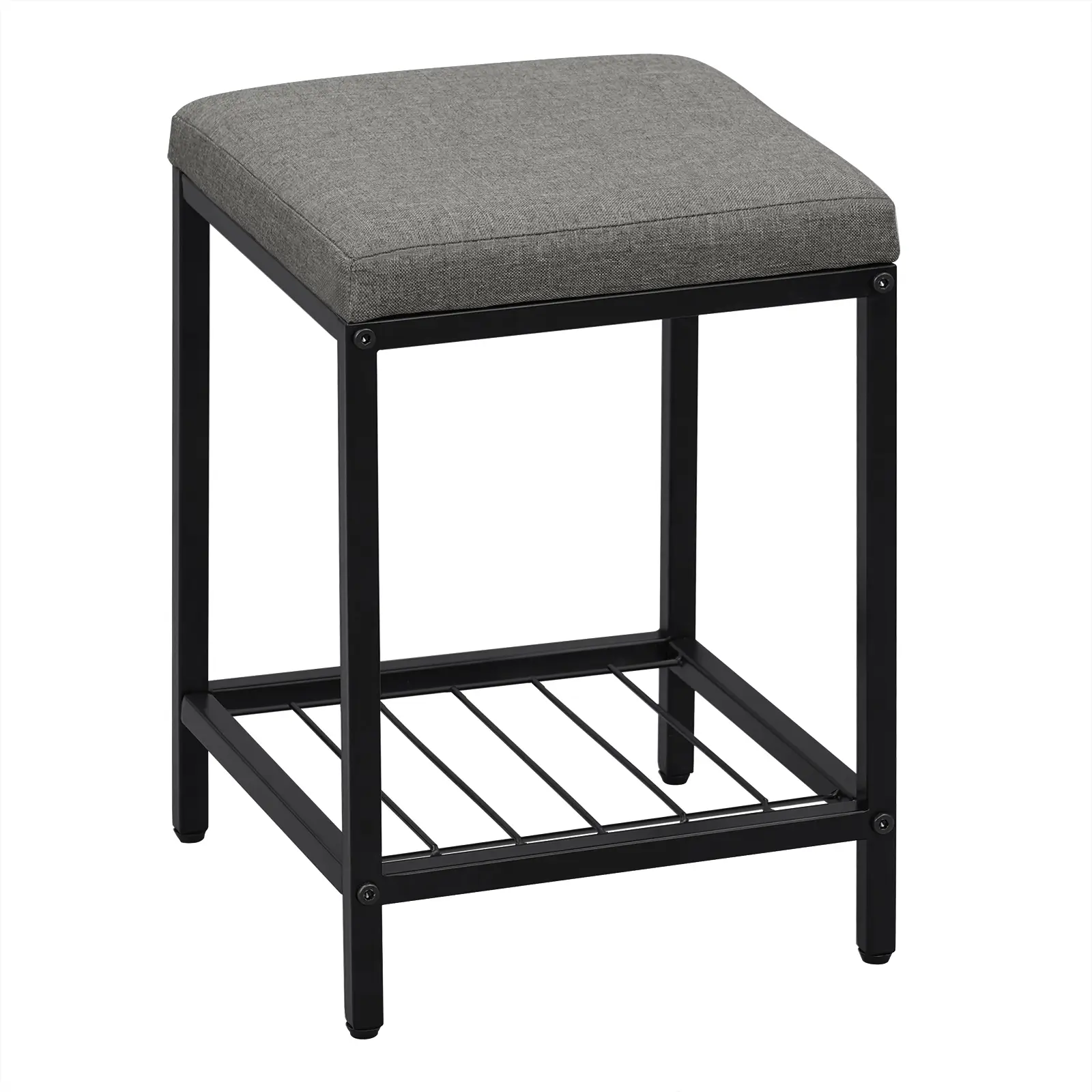 eSituro Schminkhocker, Badezimmerhocker mit Stauraum, Polsterhocker mit Stauraum, rechteckiger Hocker für Schminktisch Couch Sofa, Leinen Metall, Dunkelgrau+Schwarz