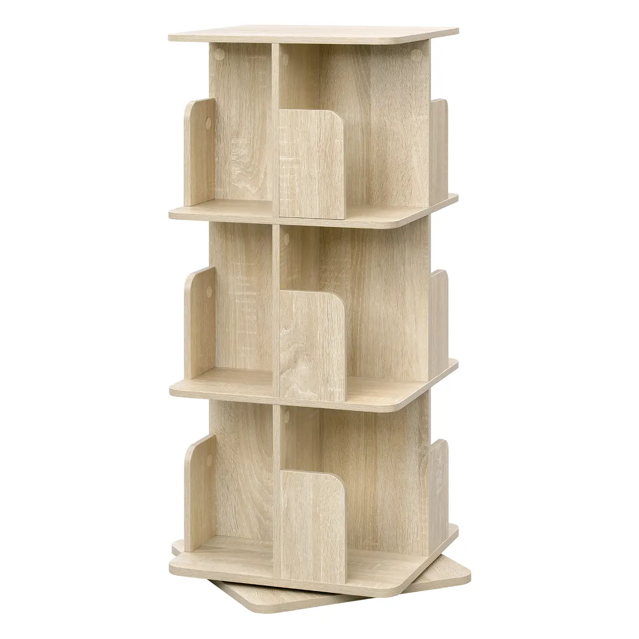 EUGAD 3-stufiges drehbares Bücherregal mit 12 Fächern, 360° drehbares Regal, multifunktionales Aufbewahrungsregal, für Wohnzimmer Büro, 40x94,5x40 cm, Hell Eiche