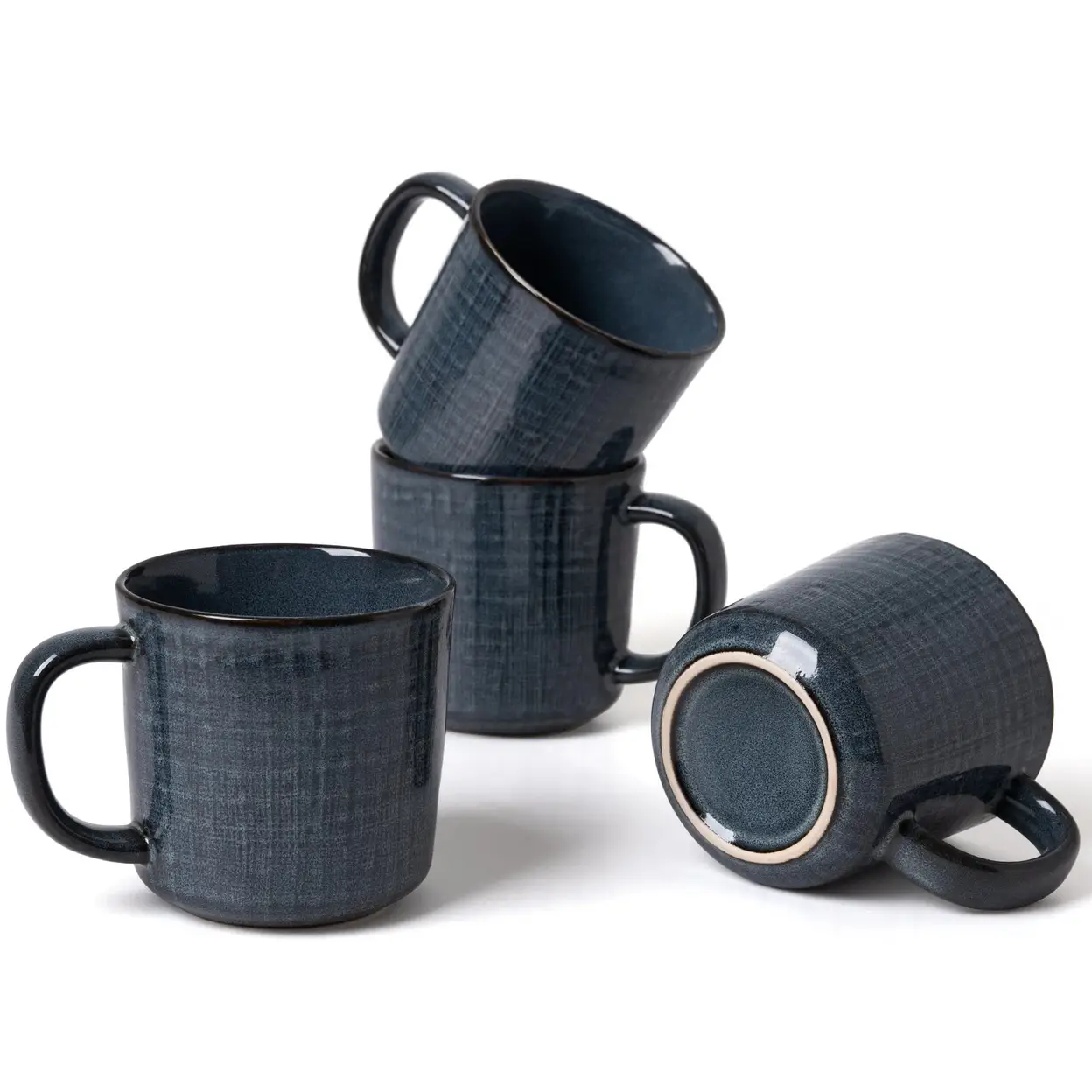 Famiware Keramik-Kaffeetassen, 14 oz, Set mit 4 Stück – Tiefblaue Tassen mit Stofftextur für Zuhause, Büro und Café