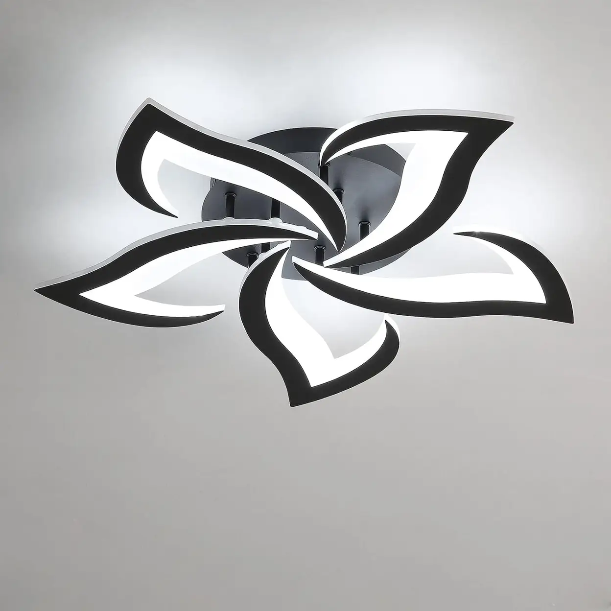 Goeco Modernes LED-Deckenlicht 48W 6500LM Schwarz Blumen Acryl 6000K Kühles Weiß für Schlafzimmer Wohnzimmer Küche Flur