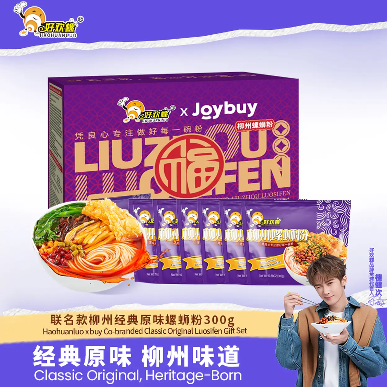 Hao Huan Luo Liuzhou Luosifen (Schnecken-Reisnudeln), 300 g, 6 Beutel, Farbkarton | Jahrgangs-Spezialangebot, ideale Geschenkidee