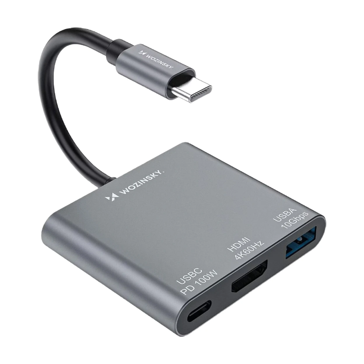 Hub Wozinsky WHCH-01 USB-C PD 100W HDMI 4K@30Hz USB-A 10Gbps - grau