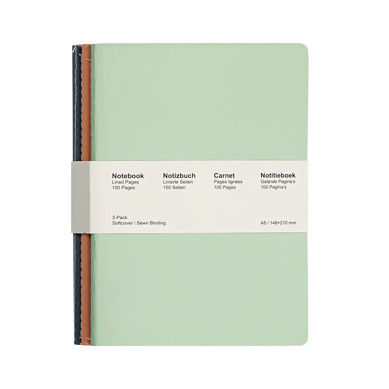 Jubiluu Divers A5 Softcover-Notizbuch 3er-Pack Stitch - 50 Blatt (80 g Offest-Papier) - klassische cremefarbene, gelinierte Notizbuchausführung für Schule, Büro, Journaling oder alltägliche Notizen - Fresh Pastels