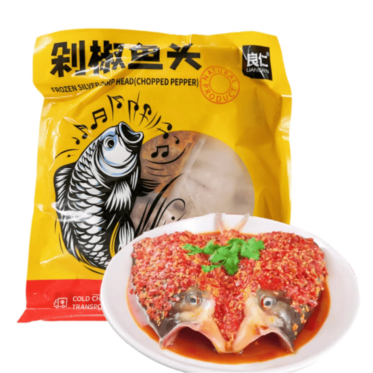 LIANGREN Gefrorener Silberkarpfenkopf (mit gehacktem roten Pfeffer) 700g