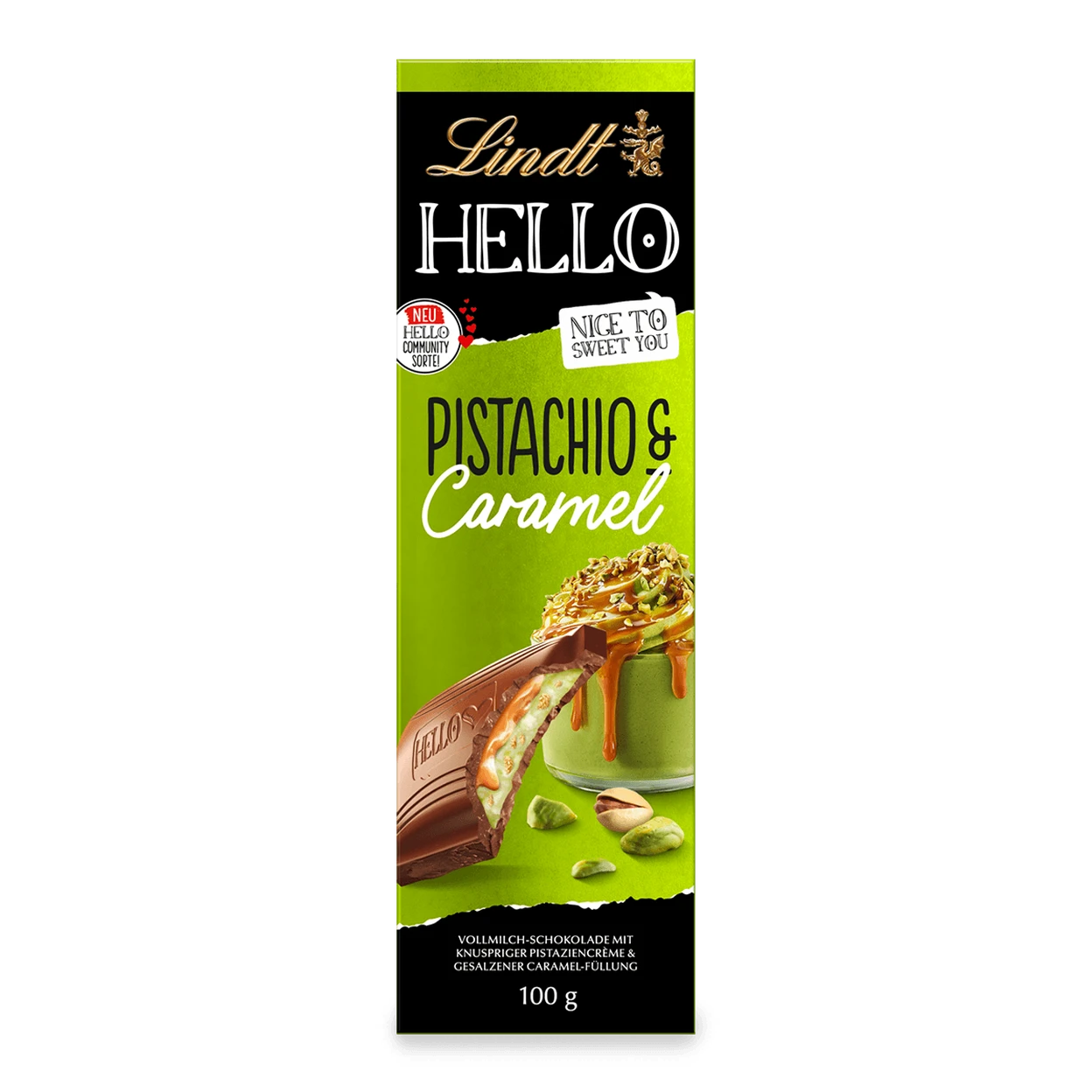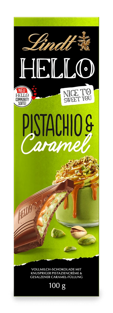 Lindt HELLO pistazie Salzkaramell tafel, 100 g