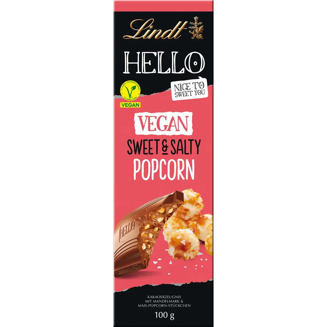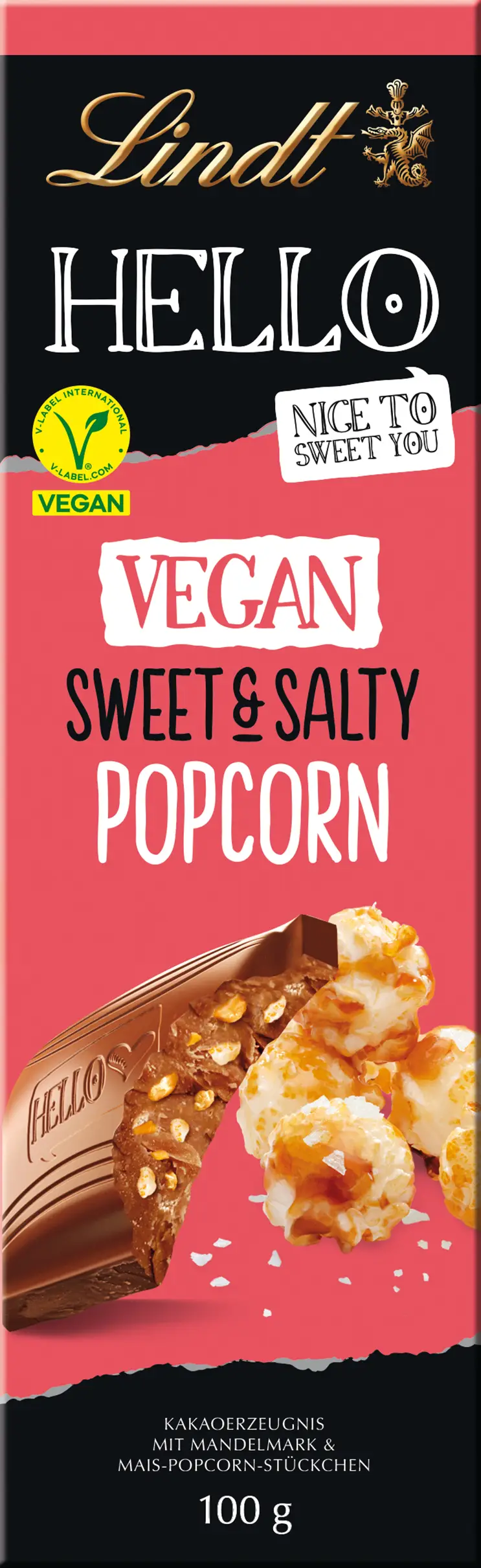 Lindt HELLO Tafel vegan sweet & salty popcorn, 100 g