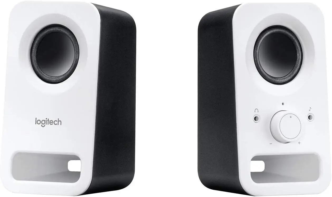 Logitech Z150 PC-lautsprecher, stereo-sound, 2 lautsprecher, 6 watt spitzenleistung, 3,5 mm-Eingang, bedienung am rechten lautsprecher, kopfhöreranschluss, EU-stecker, für PC / TV / telefon / tablet – weiß
