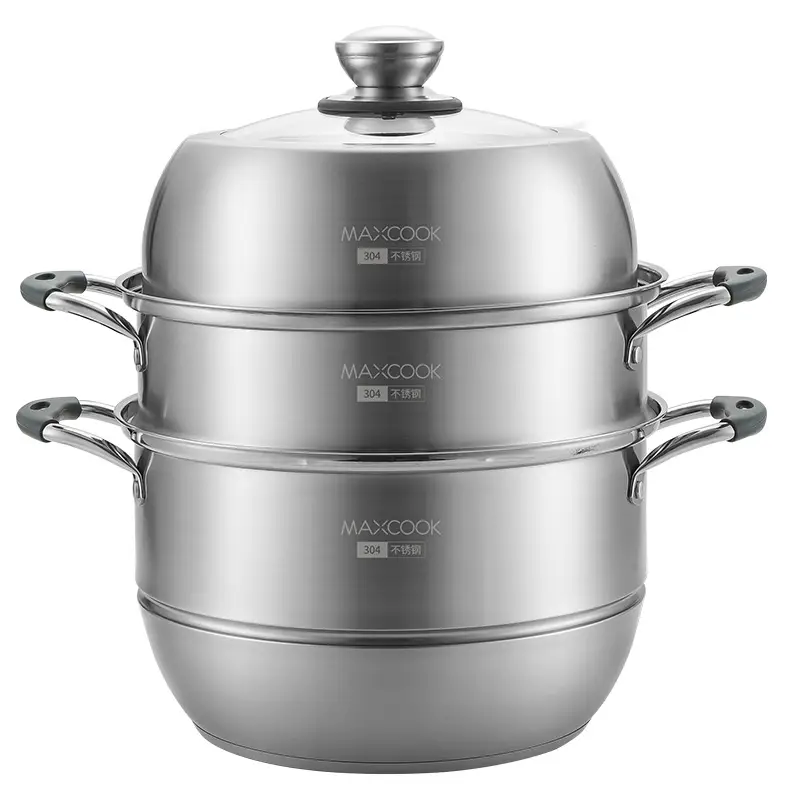 Maxcook 304SS 3-Etagen Dampfgarer Topf 30cm (Silicongriff) MCZ743