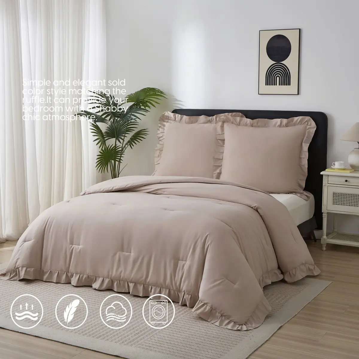 Meeallhome Bettwäsche-Set Vintage Rüschen Bett-Set 135x200cm/80x80cm*1 khaki