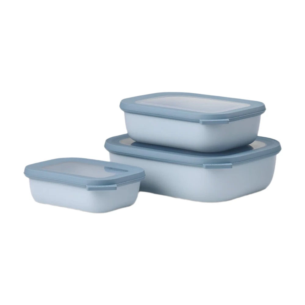 Mepal Multischale Cirqula Rechteck 3-teiliges Set - Mikrowellengeeignet - Geeignet als Aufbewahrungsbox, Kühlschrank, Gefrierschrank & Mikrowellengeschirr - 500, 1000 & 2000 ml - Nordic blue