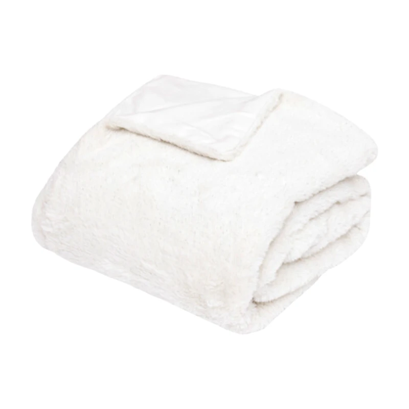 Metallic Polyester-Fell-Decke, 130 x 180 cm, weiß