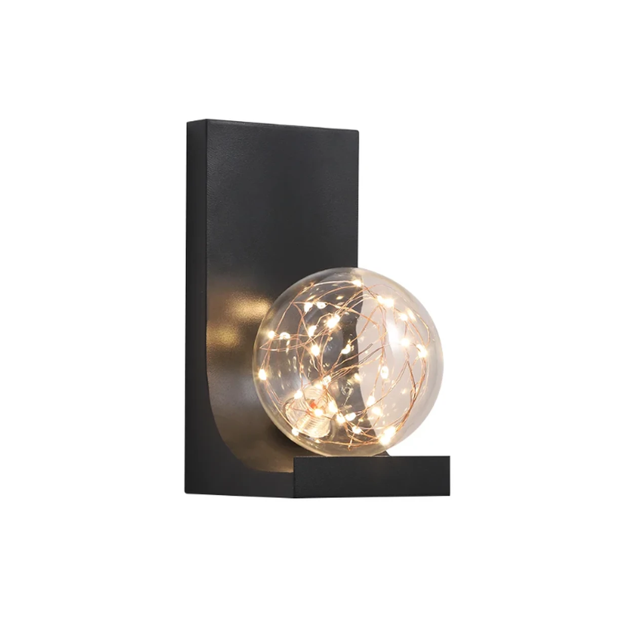 Moderne schwarze LED-Wandleuchte mit Glas-Kugel-Schirm