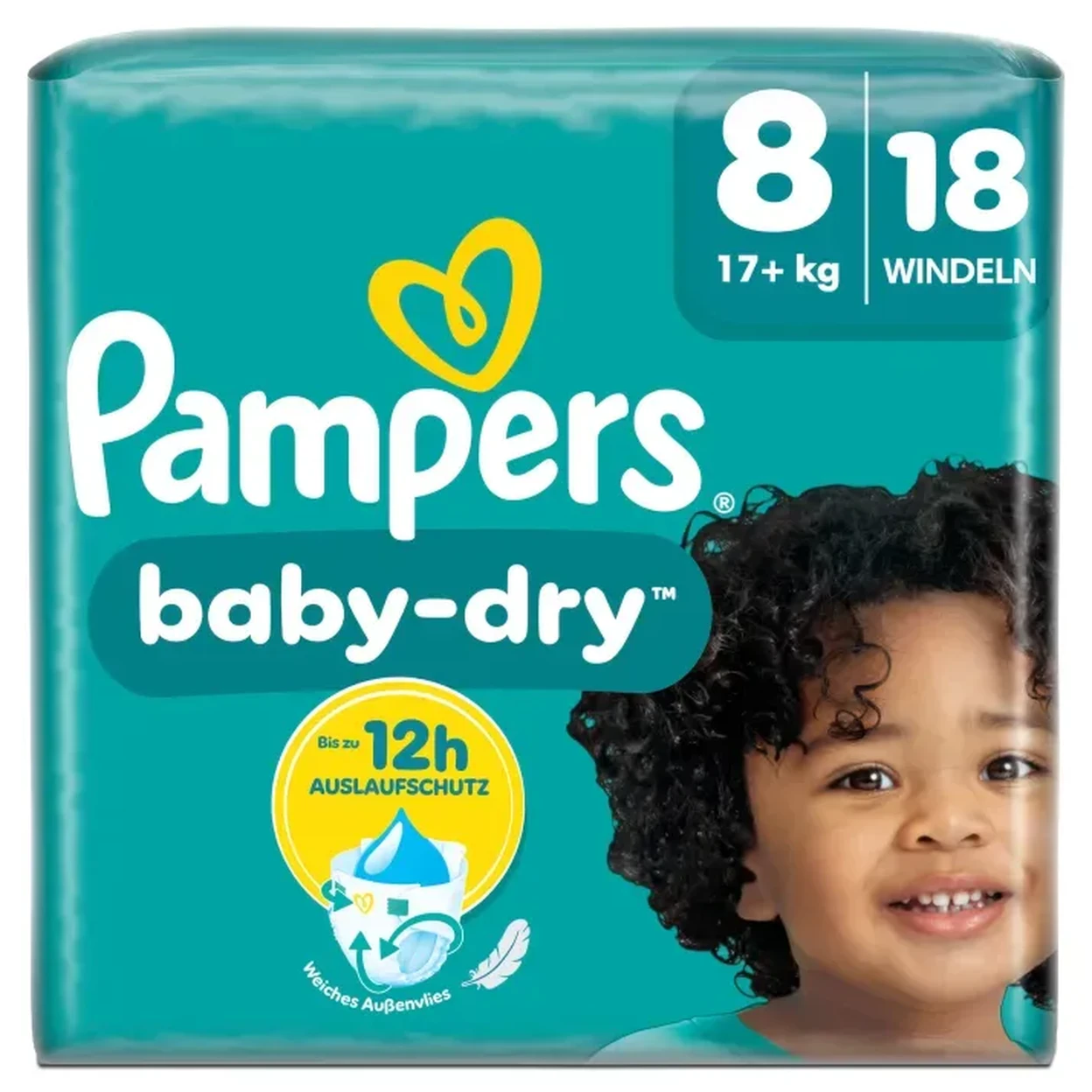 Pampers Baby Dry Größe 8 für 17+kg, Einzelpackung mit 18 Windeln