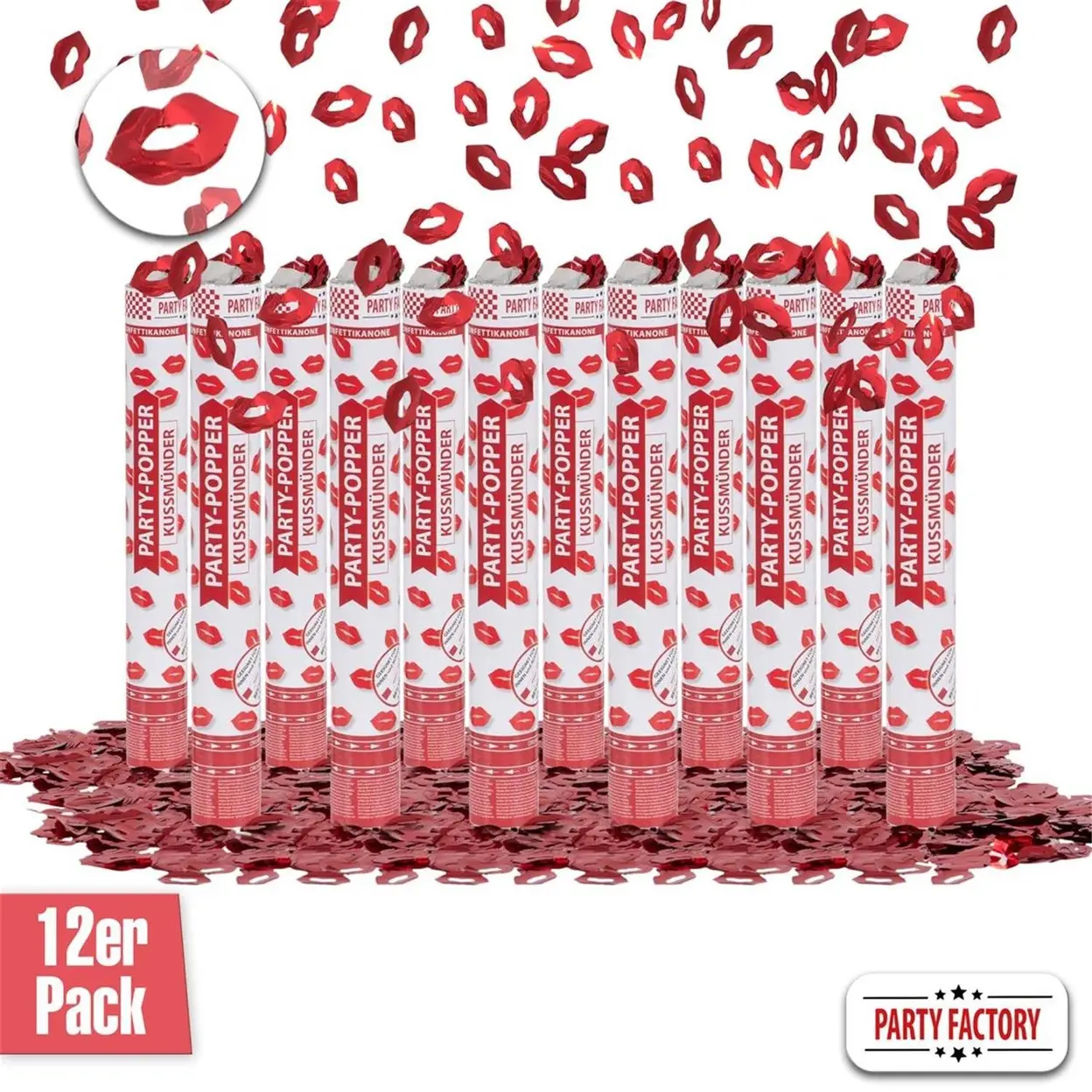 Party Factory Party-Popper-Gun, 12-teiliges Set, 40 cm, Kussmund, Konfetti-Gun, Silberstimmung