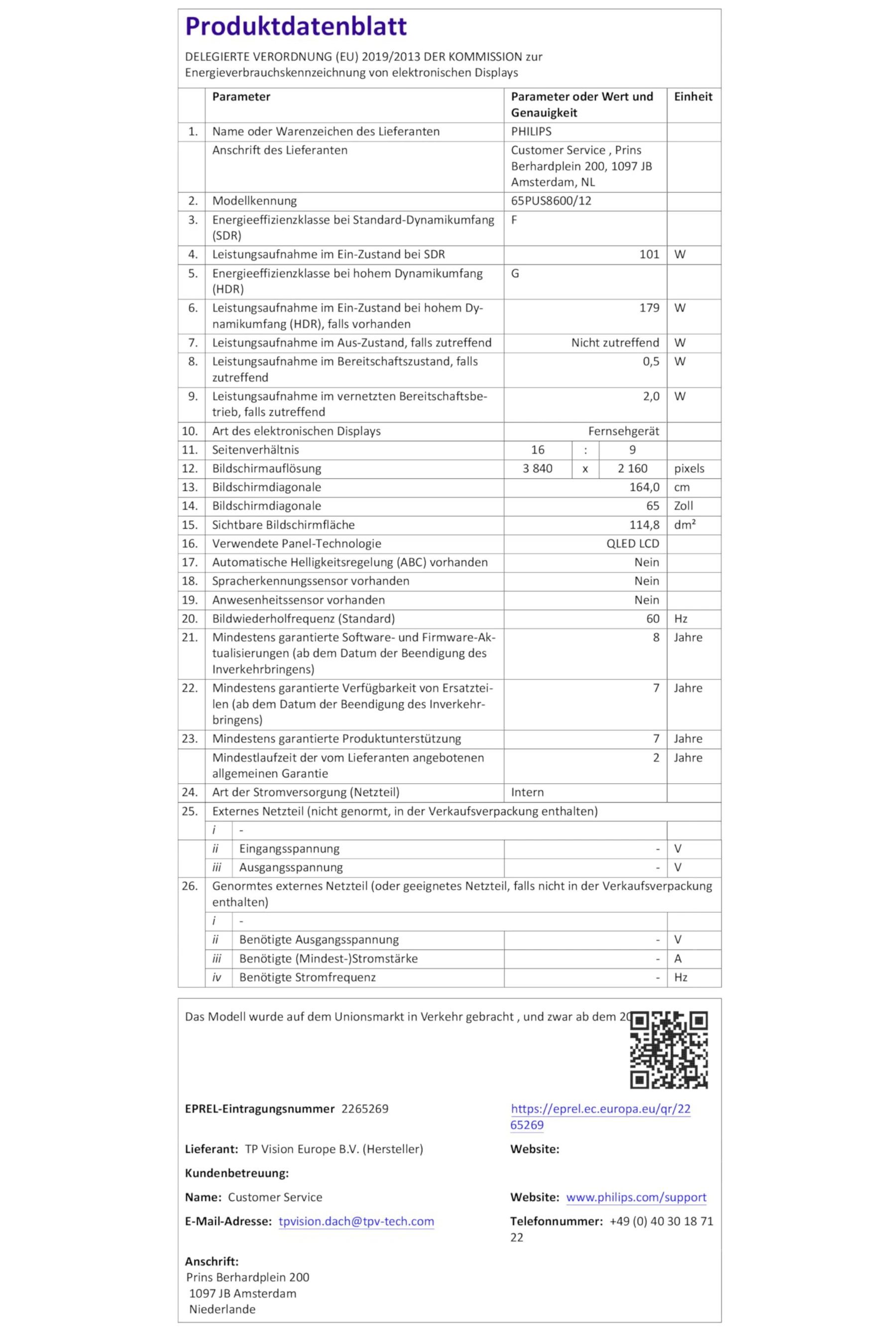 Serien:AMBILIGHT QLED 65" 8600-Serie