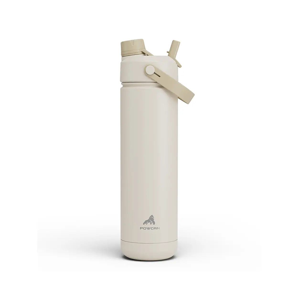 POWCAN by Meoky Sport-Trinkflasche mit zwei Öffnungen 26 Unzen (ca. 770 ml) mit Tragegriff – Haferflocken-Farbe