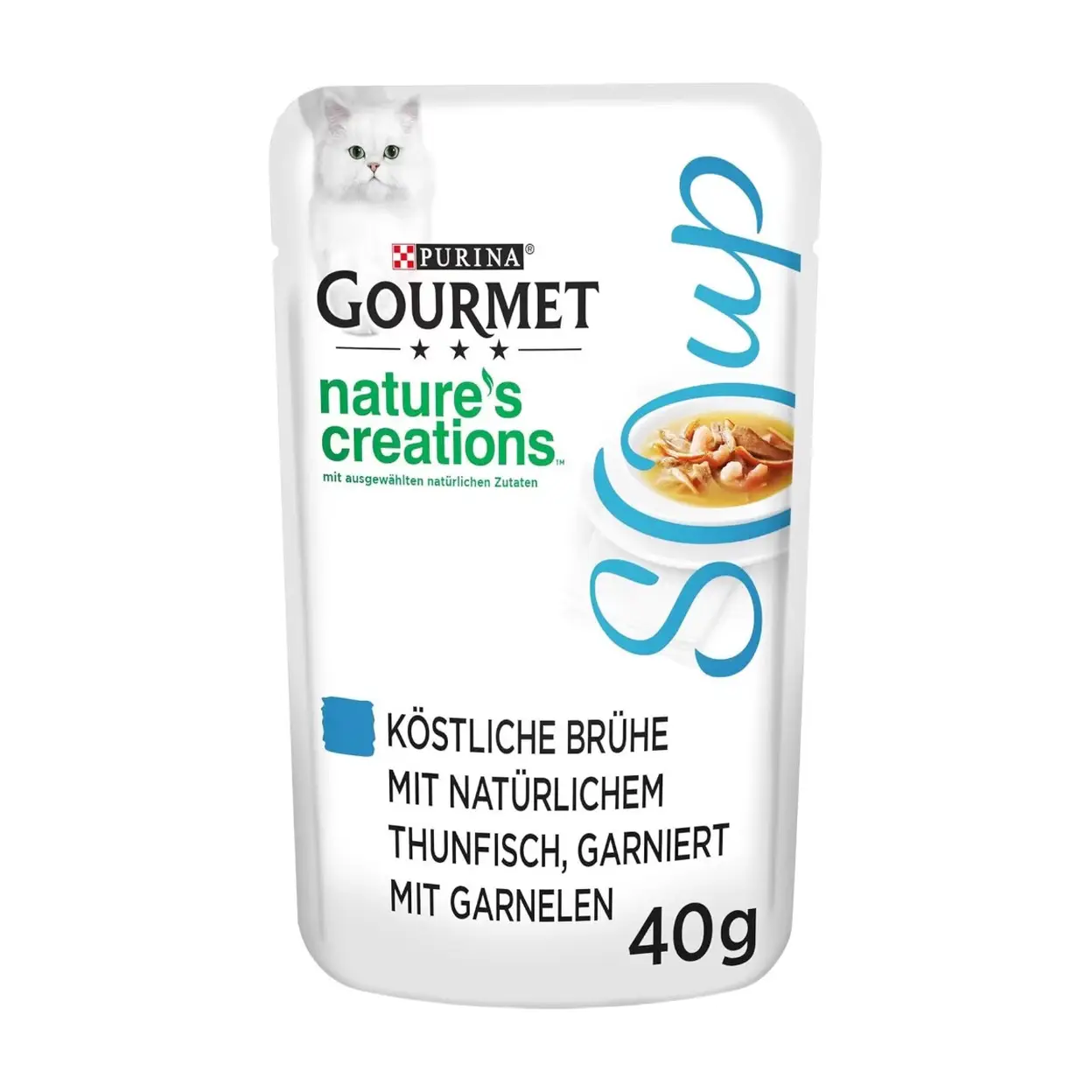 PURINA Gourmet Crystal Soup für Katzen mit naturbelassenem Thunfisch und Garnelen, 32er Pack (32 x 40g)