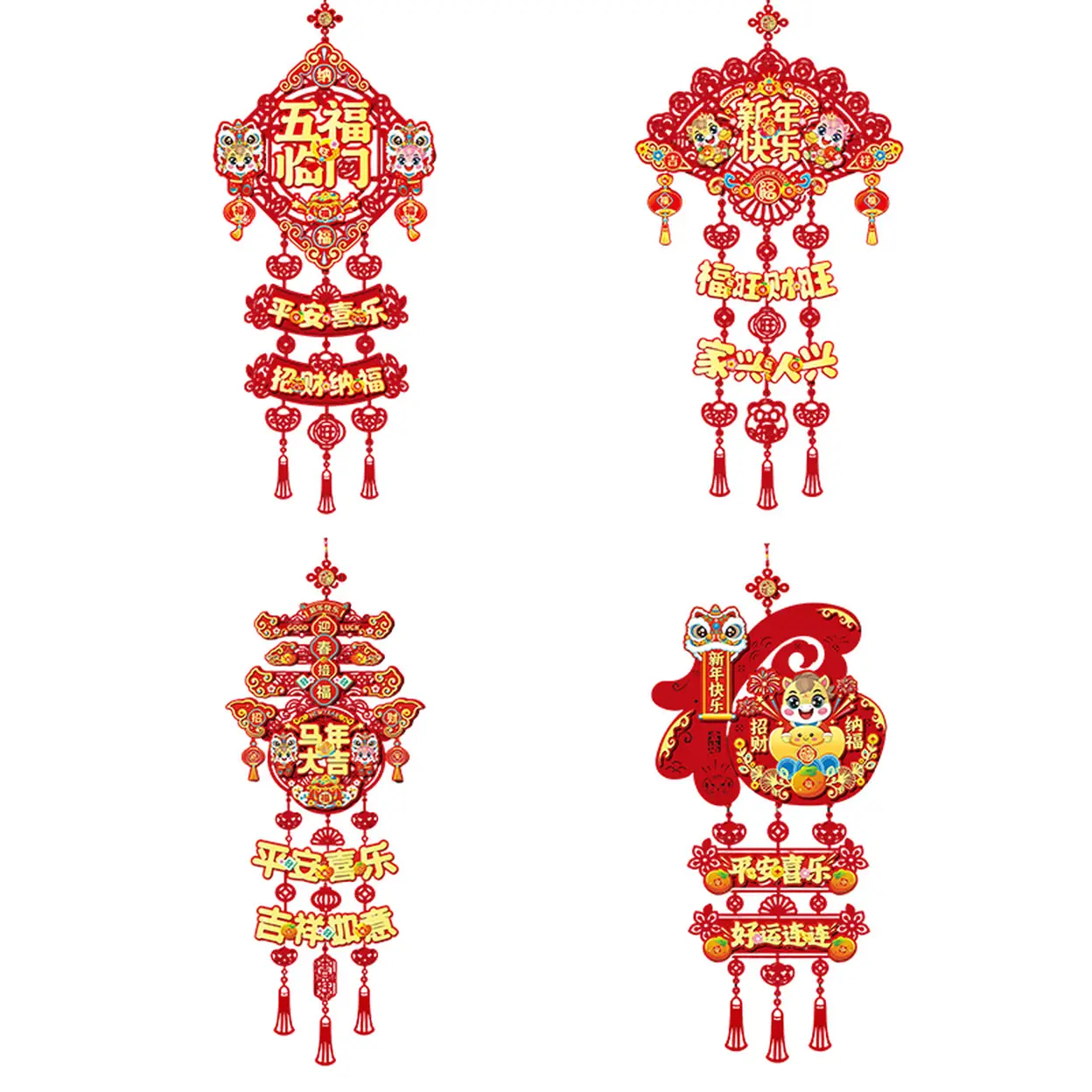 Red Envelope 4er-Pack Chinesisches Neujahr (Frühlingsfestival) Glücks-Icon-Charakter zum Aufhängen, traditionelles Segensornament für Wandanhänger, Türdeko und Festdeko für Zuhause, Neu-Jahr-Aktion, Top-Geschenkideen