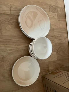 Richmount Gletscher Serie Geschirrset - 12-teiliges Keramikset für 4 Personen - Enthält Essteller/Salatteller/Müslischalen - Spülmaschinen- und Mikrowellengeeignet - Farbverlauf Rosa Beige