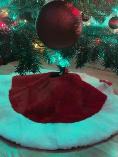 SALCAR Round Christmas Tree Skirt, 80cm Red Plush Christmas Tree Skirt, Faux Fur Christmas Tree Skirt for Christmas Trees, Fir Trees and Christmas Tree Decoration