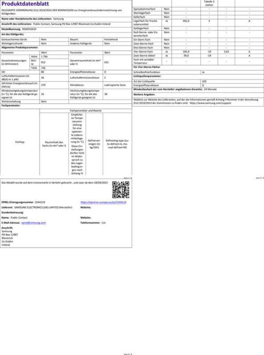 Samsung RS90F65EDFEF RS94F Side-by-Side mit AI Home, Wassertank, 621 l, 1780 mm hoch, Premium Black, EEK: D