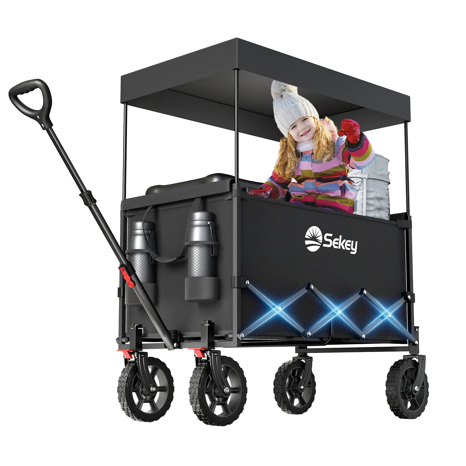 Sekey XXL Bollerwagen Faltbar Kinder 150L 150KG, Faltbarer Bollerwagen mit Dach Klappbarer Handwagen mit Sonnenschutz für Ausflug Strand Camping, S4018, Schwarz