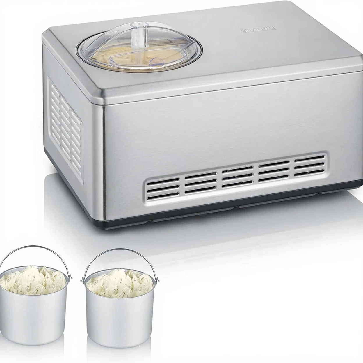 Severin Eismaschine mit 2 Schüsseln und 180 W Leistung EZ 7406, Silber/Edelstahl gebürstet