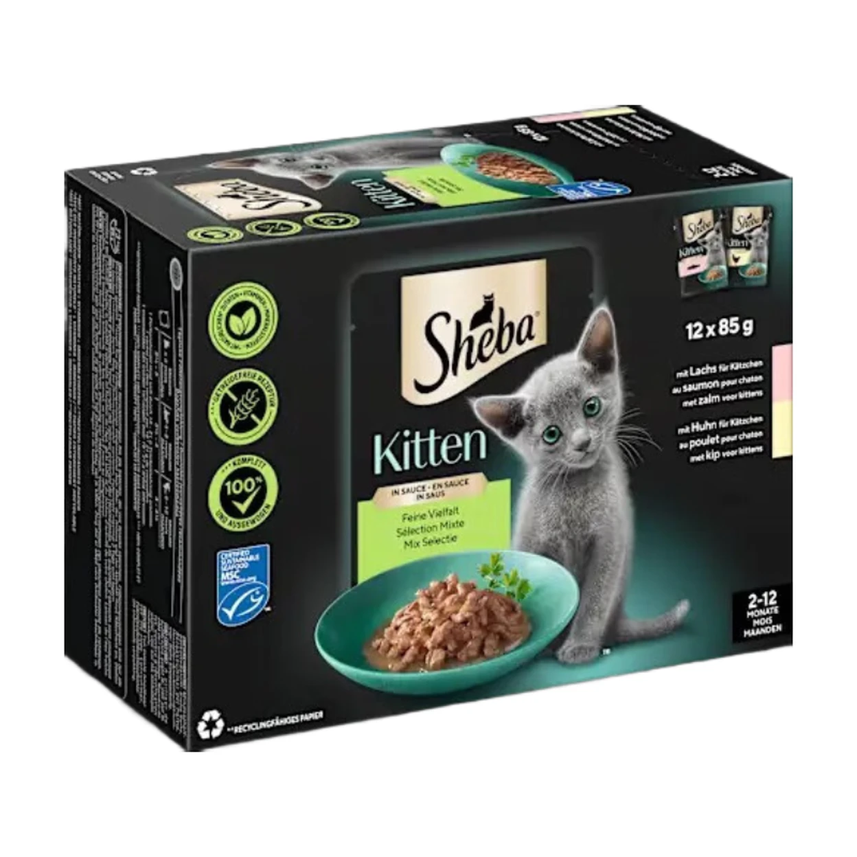 Sheba Junior Nassfutter für Kätzchen in Sauce Multipack – Geflügel- & Fischsorten 12 x 85 g