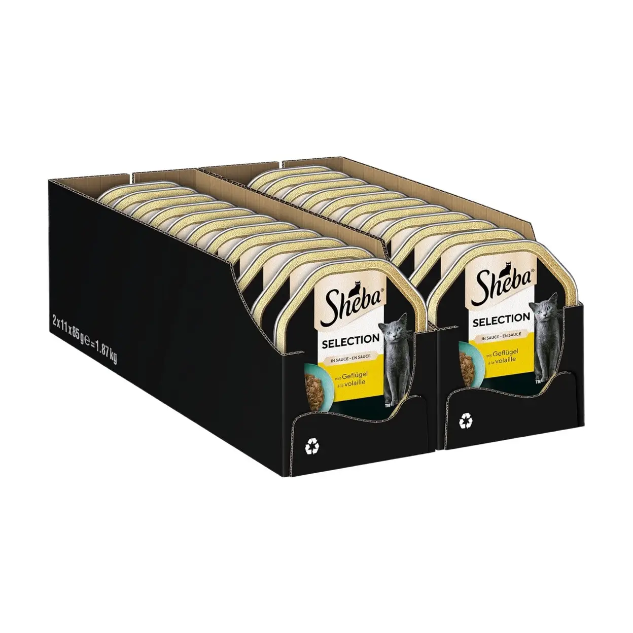 Sheba Schale Nassfutter für Katzen selection in Sauce mit Geflügelhäppchen 2 x 11 x 85 g