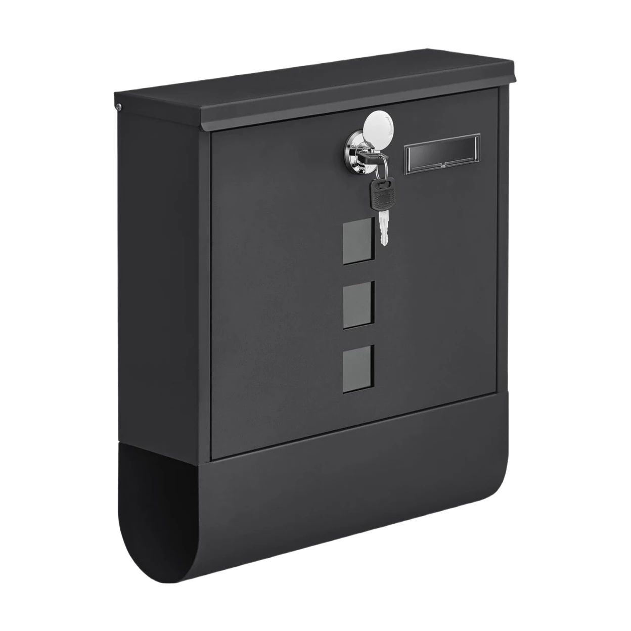SONGMICS Briefkasten, Postfach mit Kupferschlosszylinder und drehbarem Deckel, Sichtfenster, Namensschild, Zeitungshalter, einfache Montage, 10 x 30,8 x 33,8 cm, Schwarz
