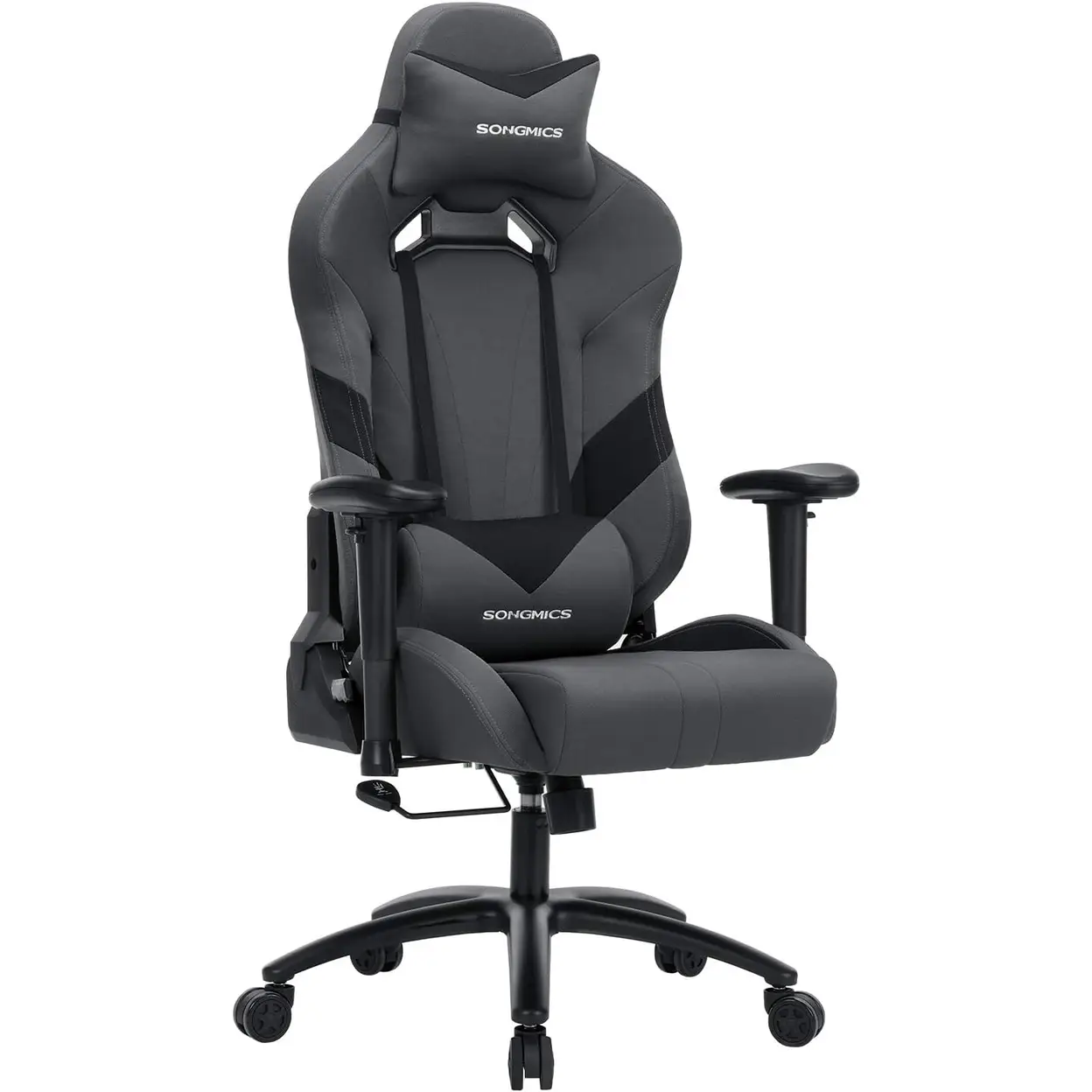 Songmics Gaming-Stuhl, Bürostuhl ergonomisch mit verstellbaren Armlehnen, Nacken- und Lendenkissen 66 x 72 x 124-132 cm Grau/Schwarz