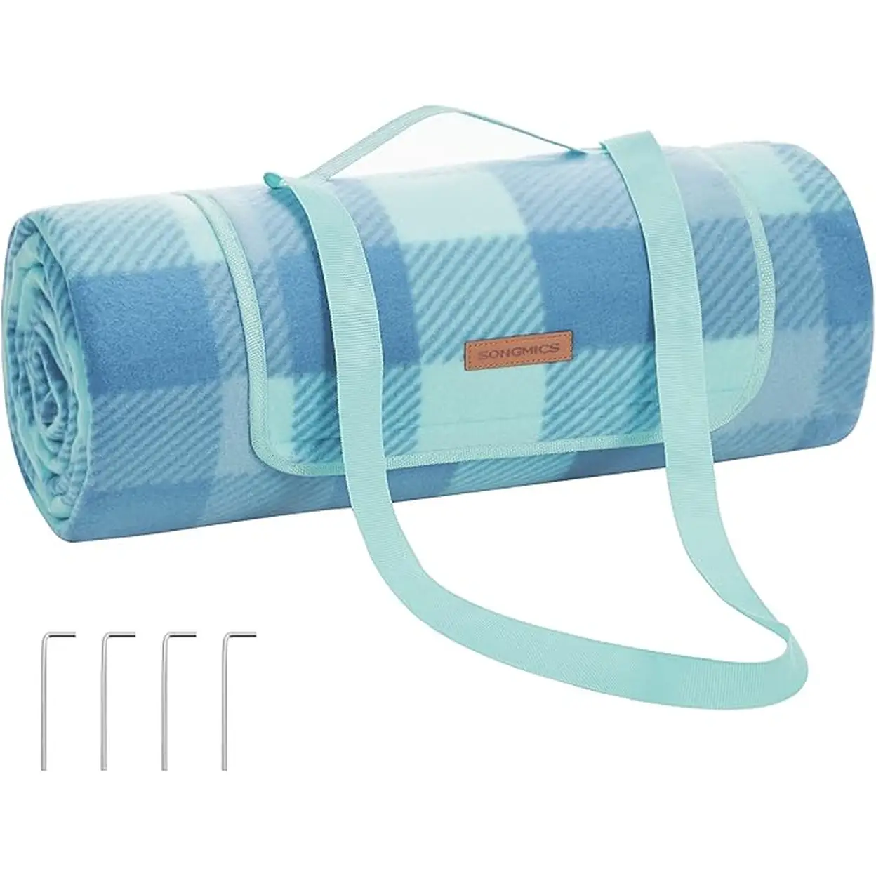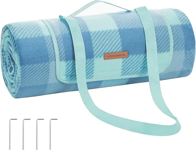 SONGMICS Picknickdecke, 200 x 200 cm, mit 4 Erdankern, große Campingdecke, für Park, Garten, Strand, wasserdicht, faltbar, grün-blau GCM011Q02